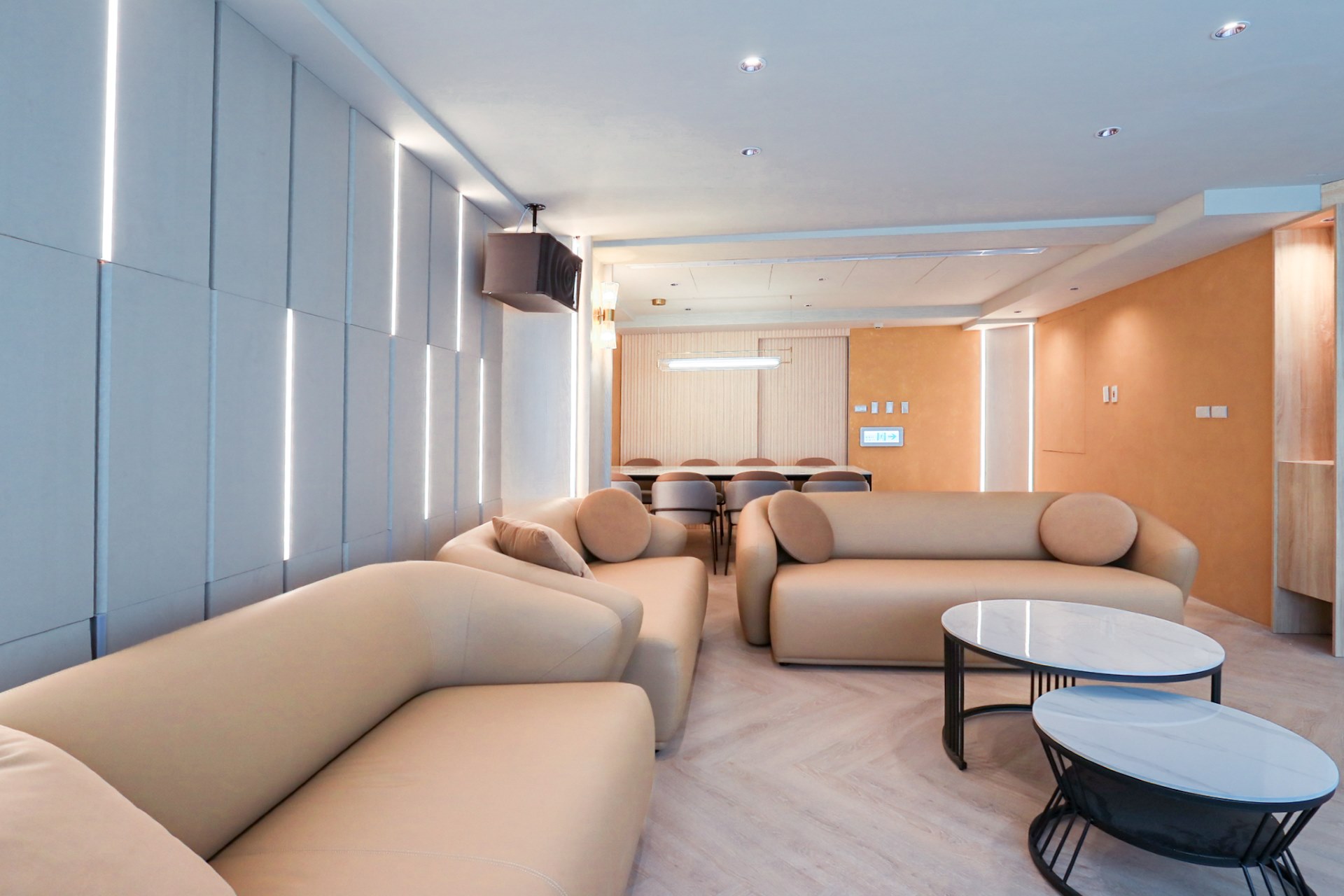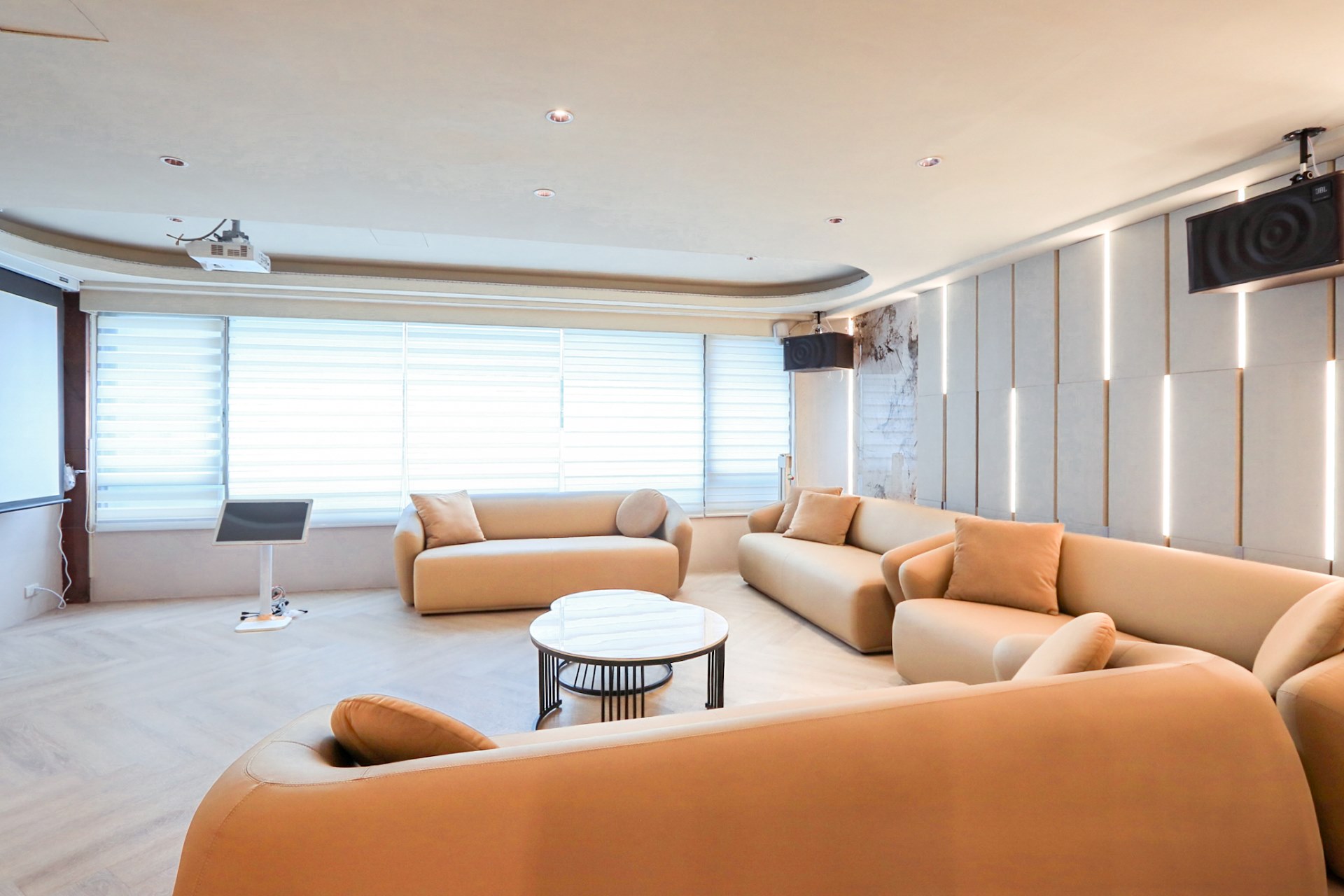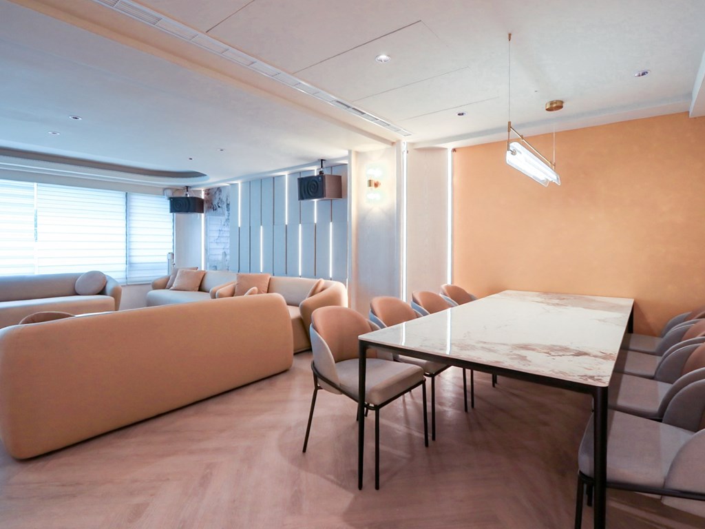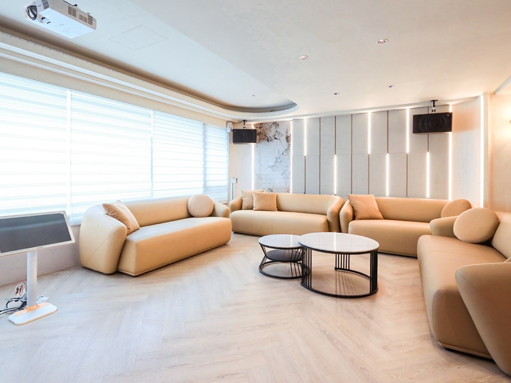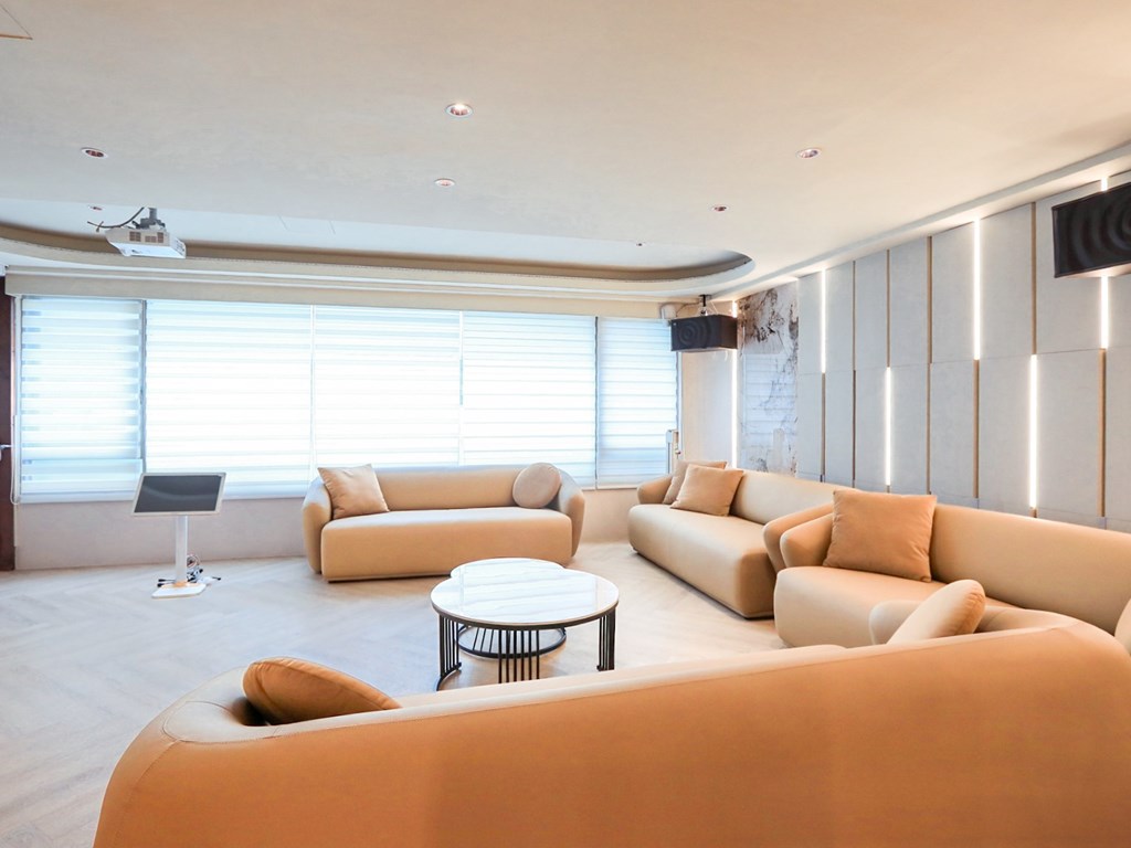 從溫暖柔和的色調、現代感十足的家具,到頂級的影音設備,我們致力於為您打造一個舒適、專業且充滿樂趣的聚會場所。