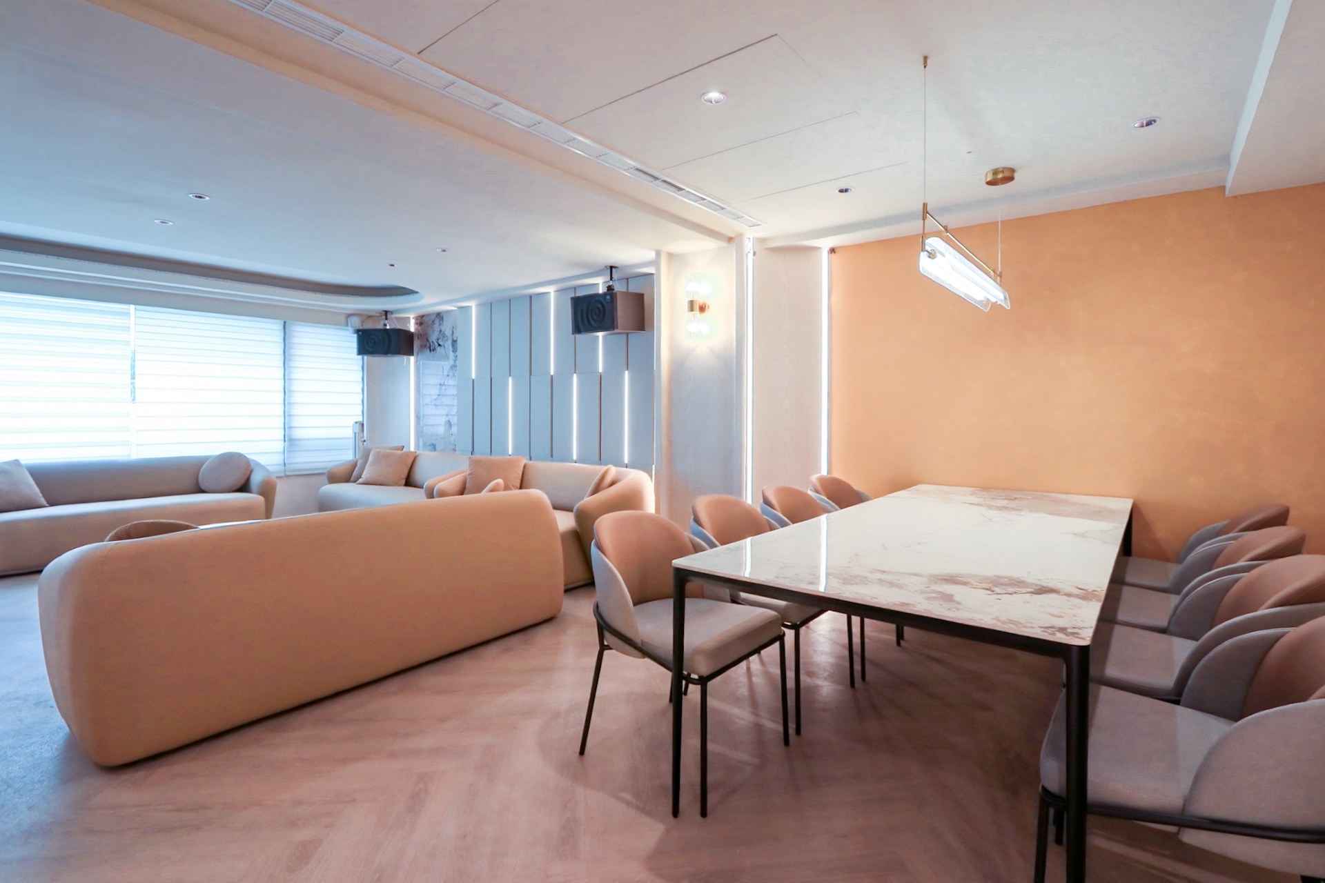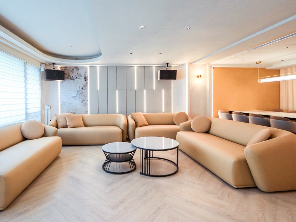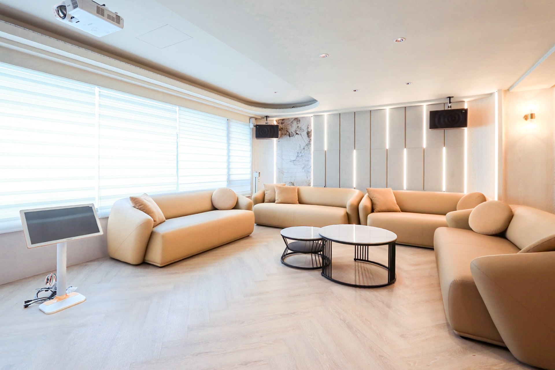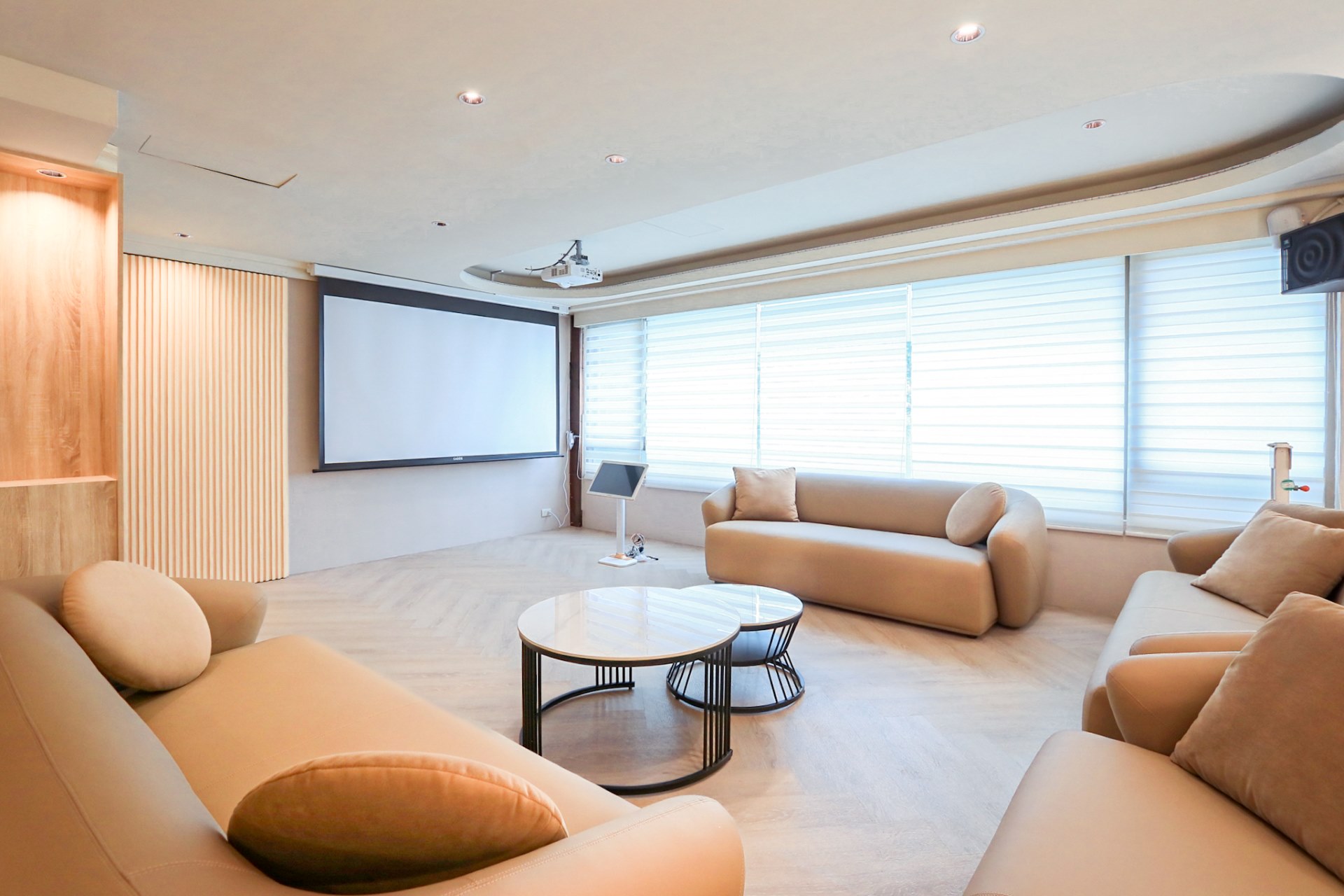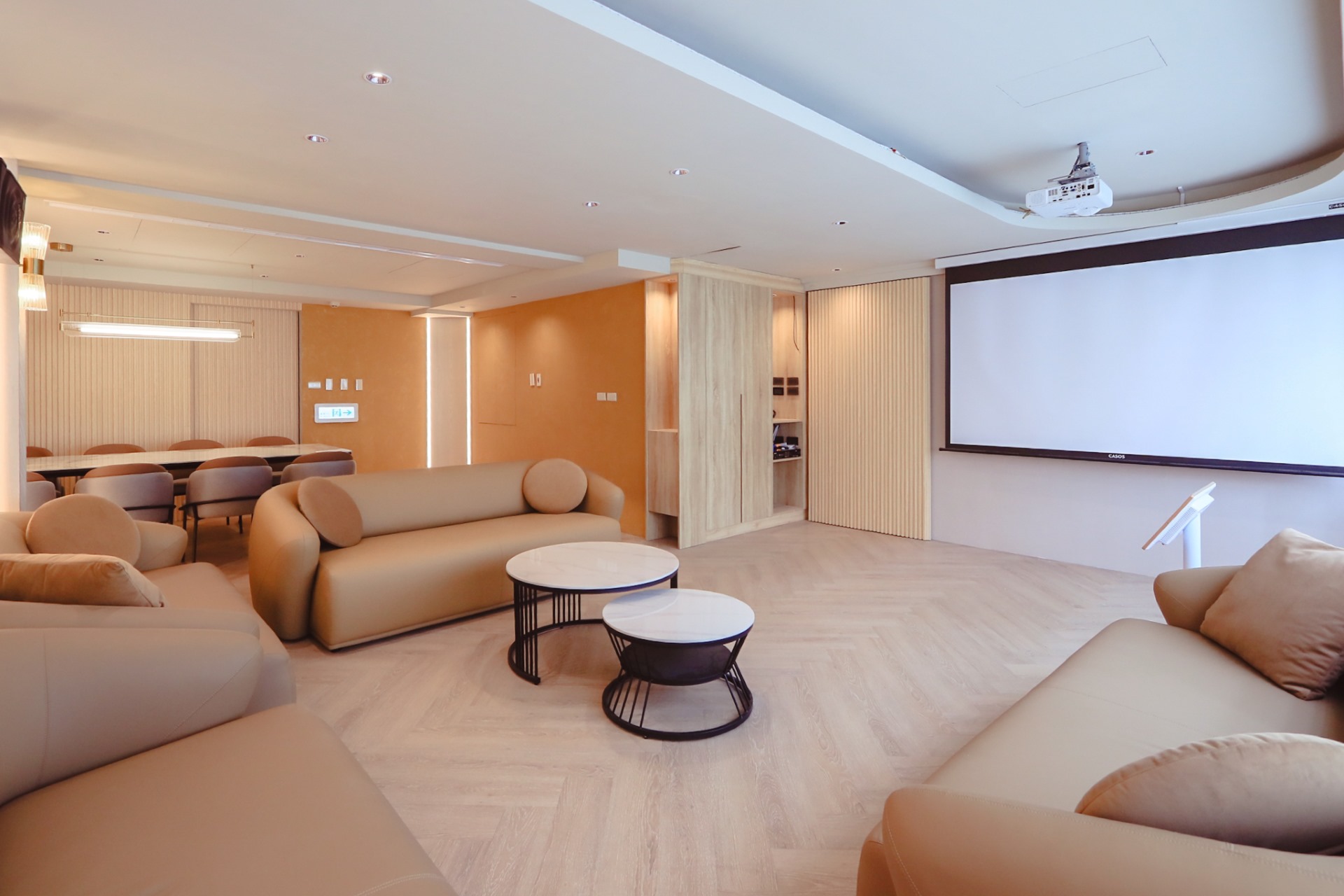 從溫暖柔和的色調、現代感十足的家具,到頂級的影音設備,我們致力於為您打造一個舒適、專業且充滿樂趣的聚會場所。